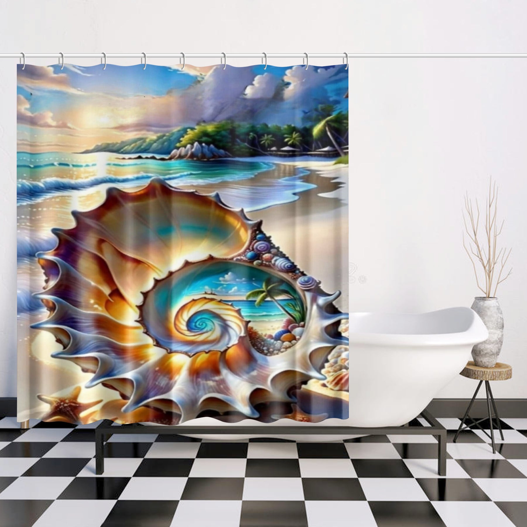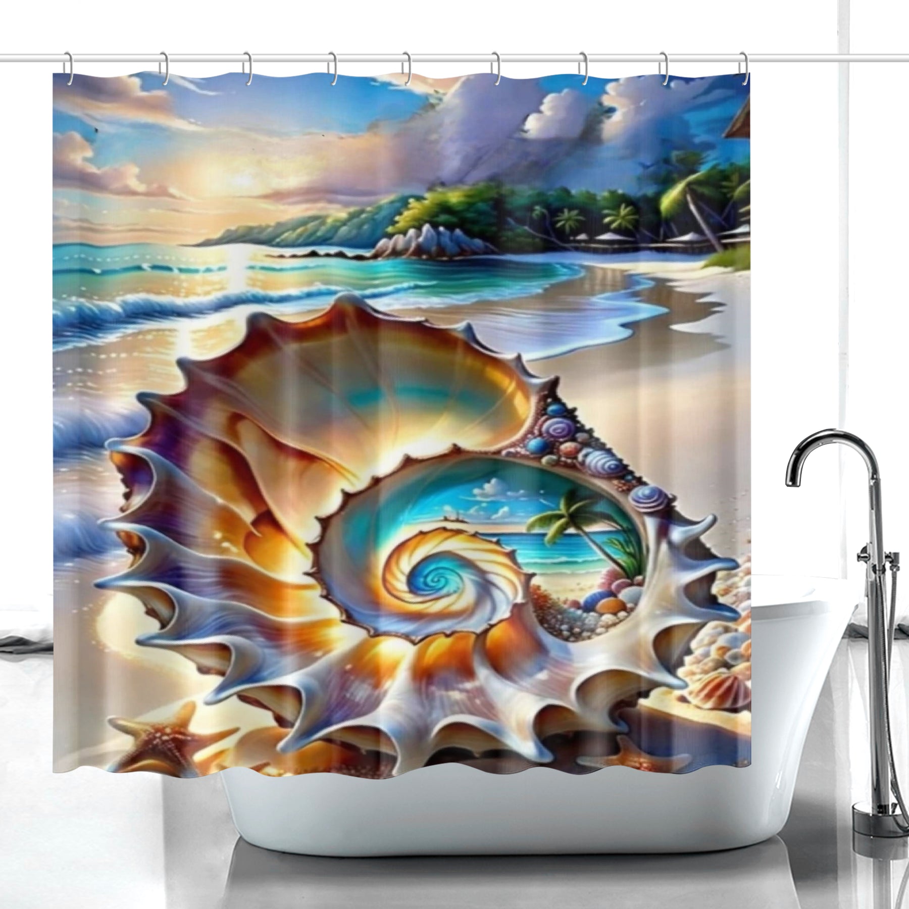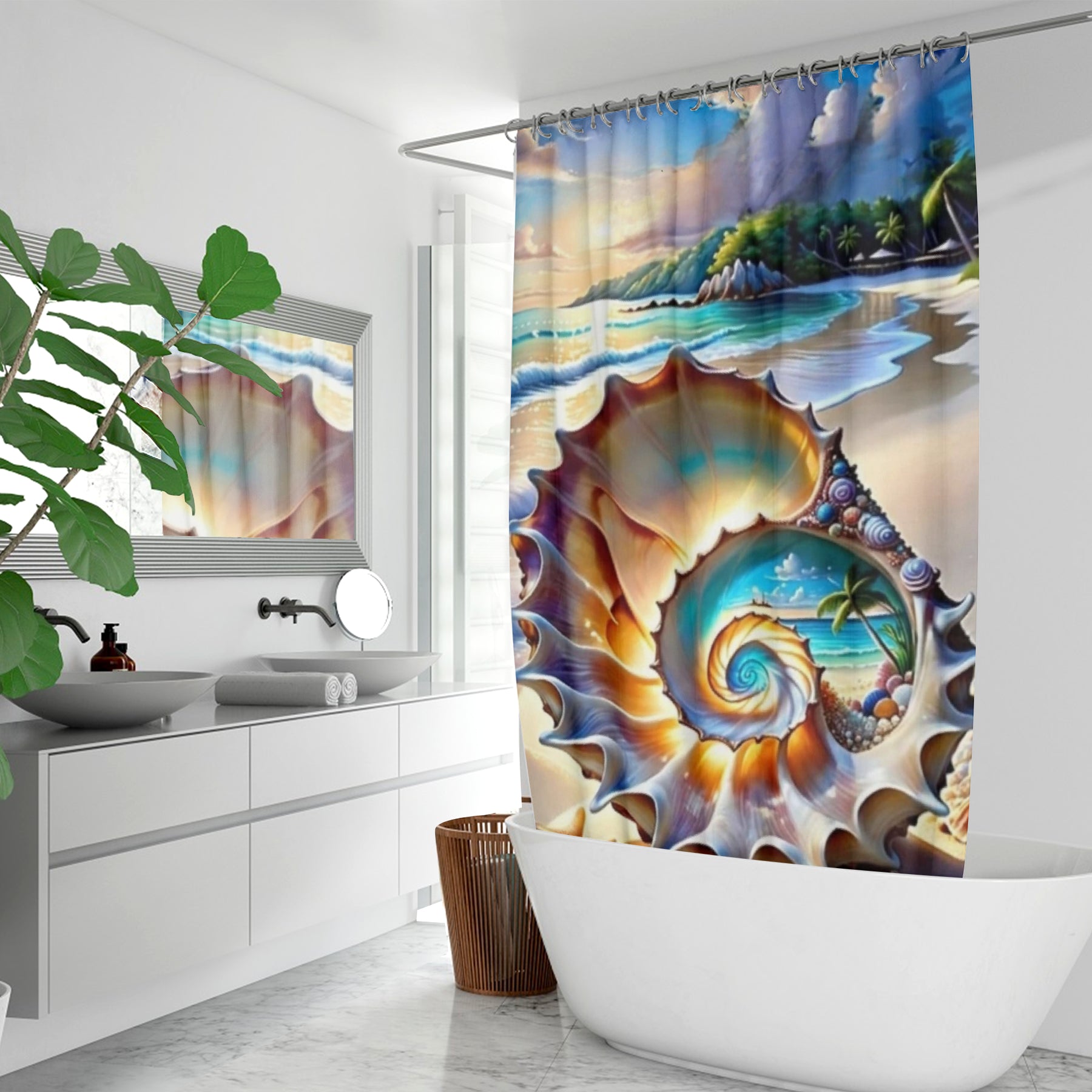 The Ocean In A Shell Quick-drying Shower Curtain brings a splash of ocean magic to your bathroom, blending coastal beauty with everyday practicality. Crafted from waterproof, quick-drying polyester fabric, it keeps your bathroom fresh, bright, and free from sogginess. The vivid one-side print, inspired by Ocean In A Shell, creates a breezy, seaside atmosphere that turns every shower into a tranquil mini getaway. 🐬🌴🌊 Perfect for ocean lovers and dreamers alike, it transforms your daily routine into a calming coastal escape while adding a touch of tropical charm to your décor.
