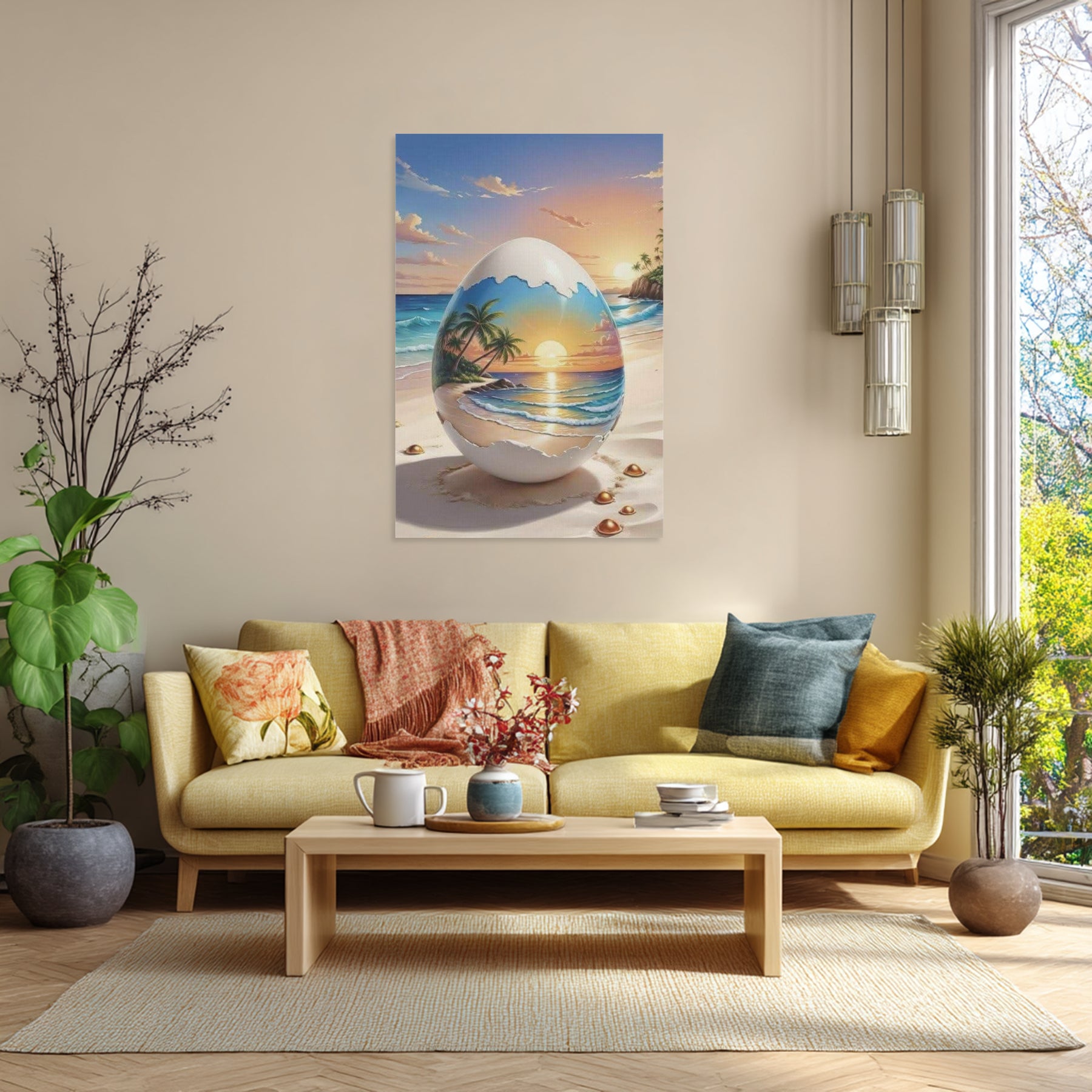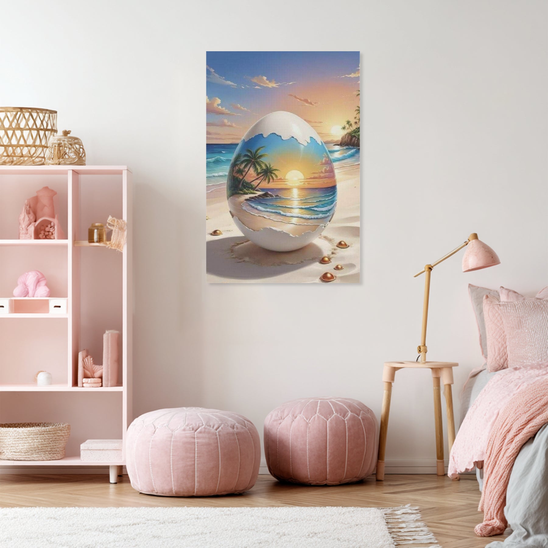 Thoughtfully crafted for long-lasting beauty, A Beach In An Egg On A Beach Canvas Wall Art is carefully inspected and securely packed to arrive in flawless condition. 📦💯 Whether you’re elevating your coastal décor, refreshing your vibe, or searching for a unique, heartfelt gift, this artwork adds a relaxing beachside atmosphere that welcomes everyone who enters.🌺🏡 Its modern aesthetic and imaginative theme make it a standout piece that sparks conversation and inspires daydreams.🌊
