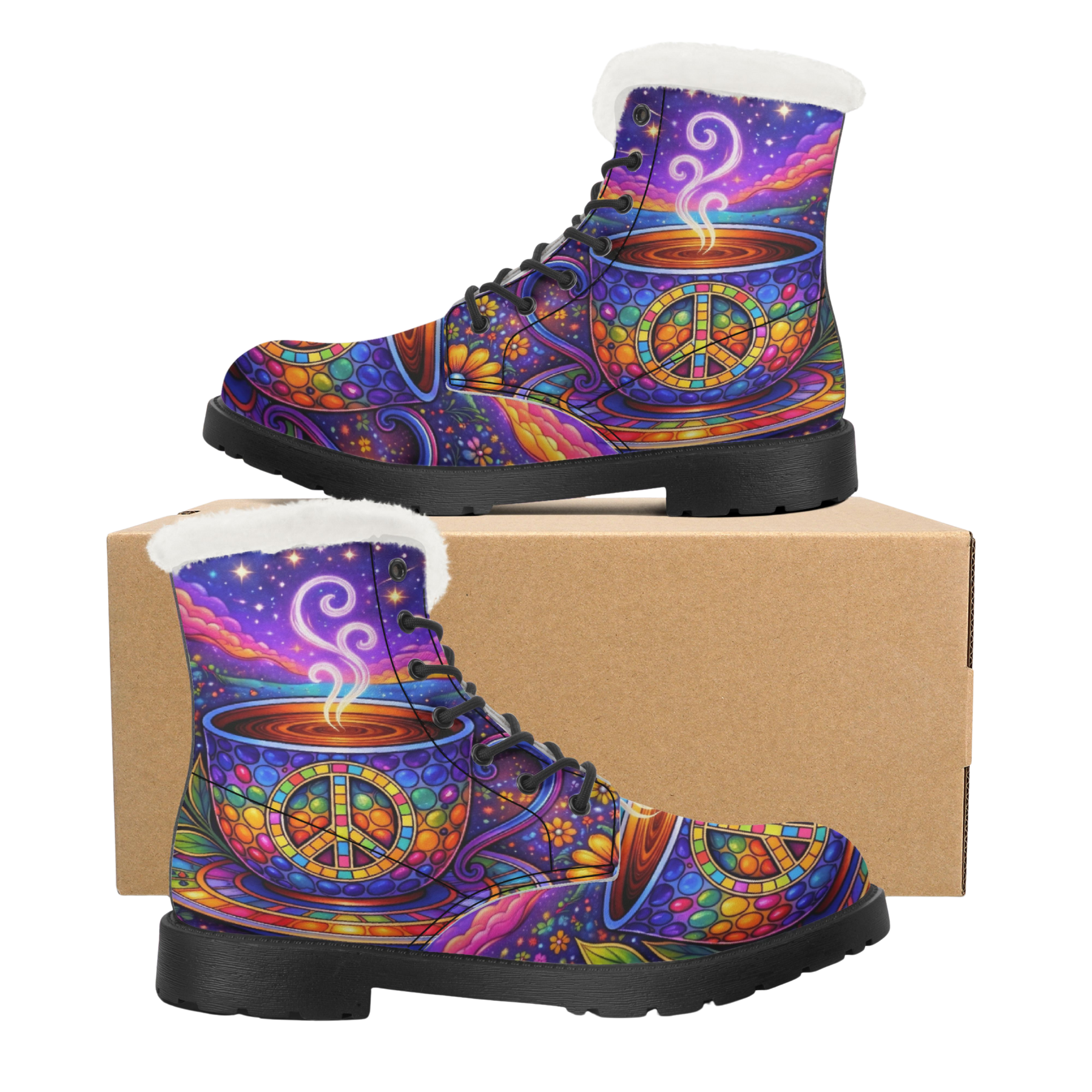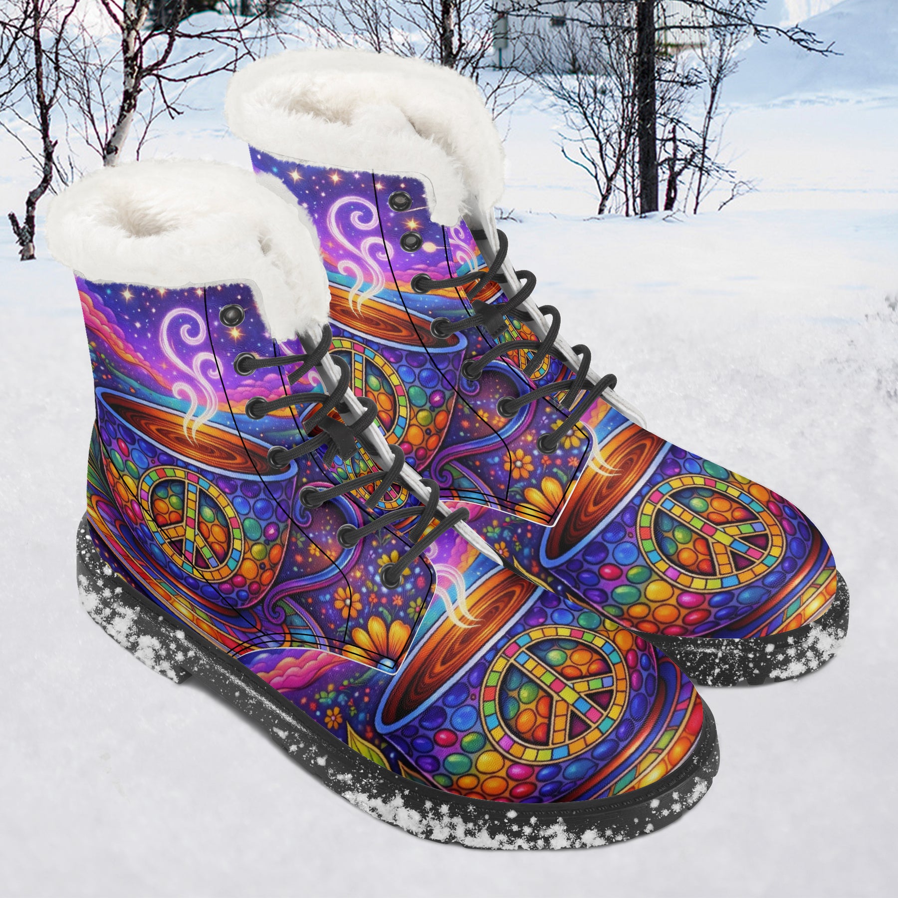 ☮️🥾Hippy Tea Cup Boots – Walk in Warmth, Wander in Peace🥾☮️