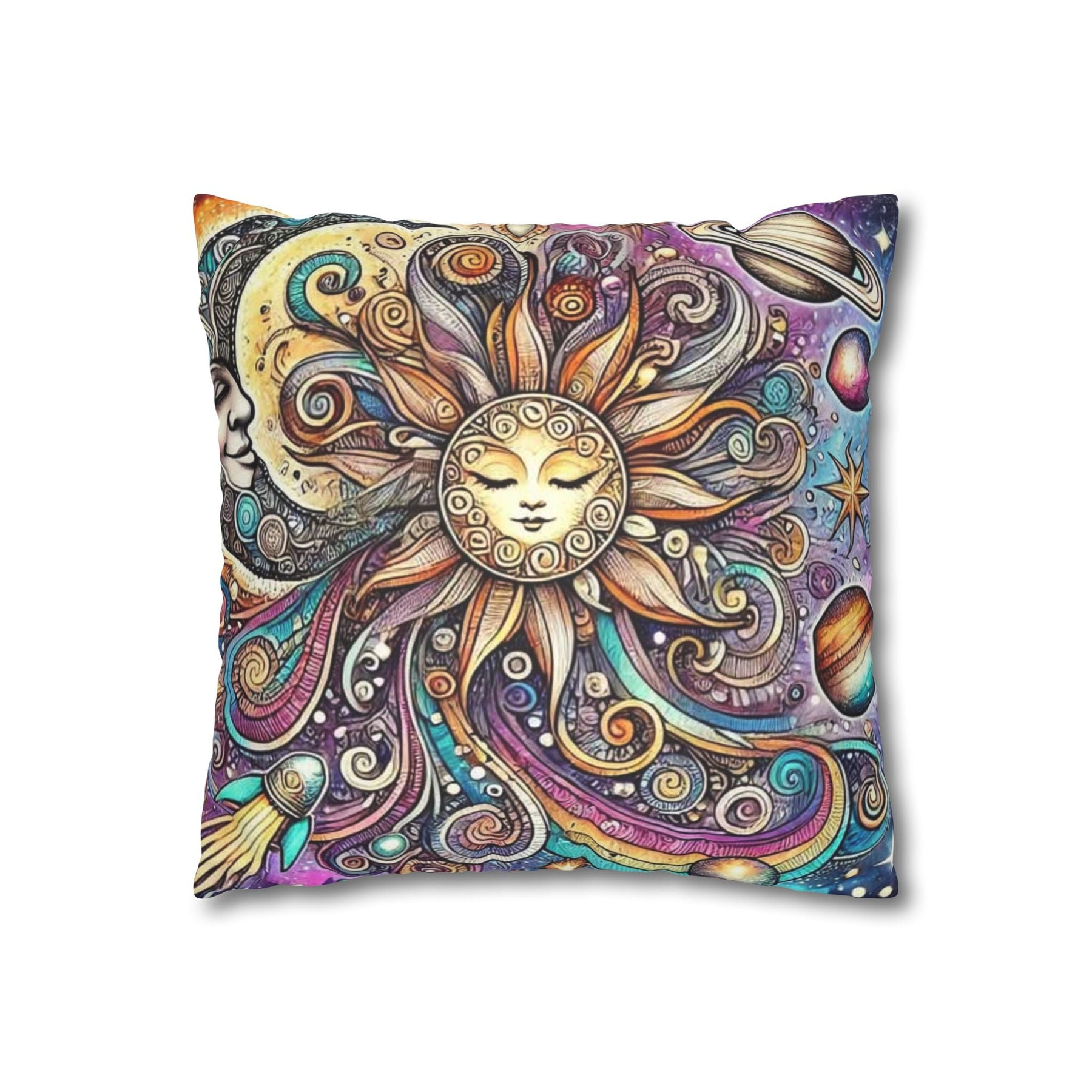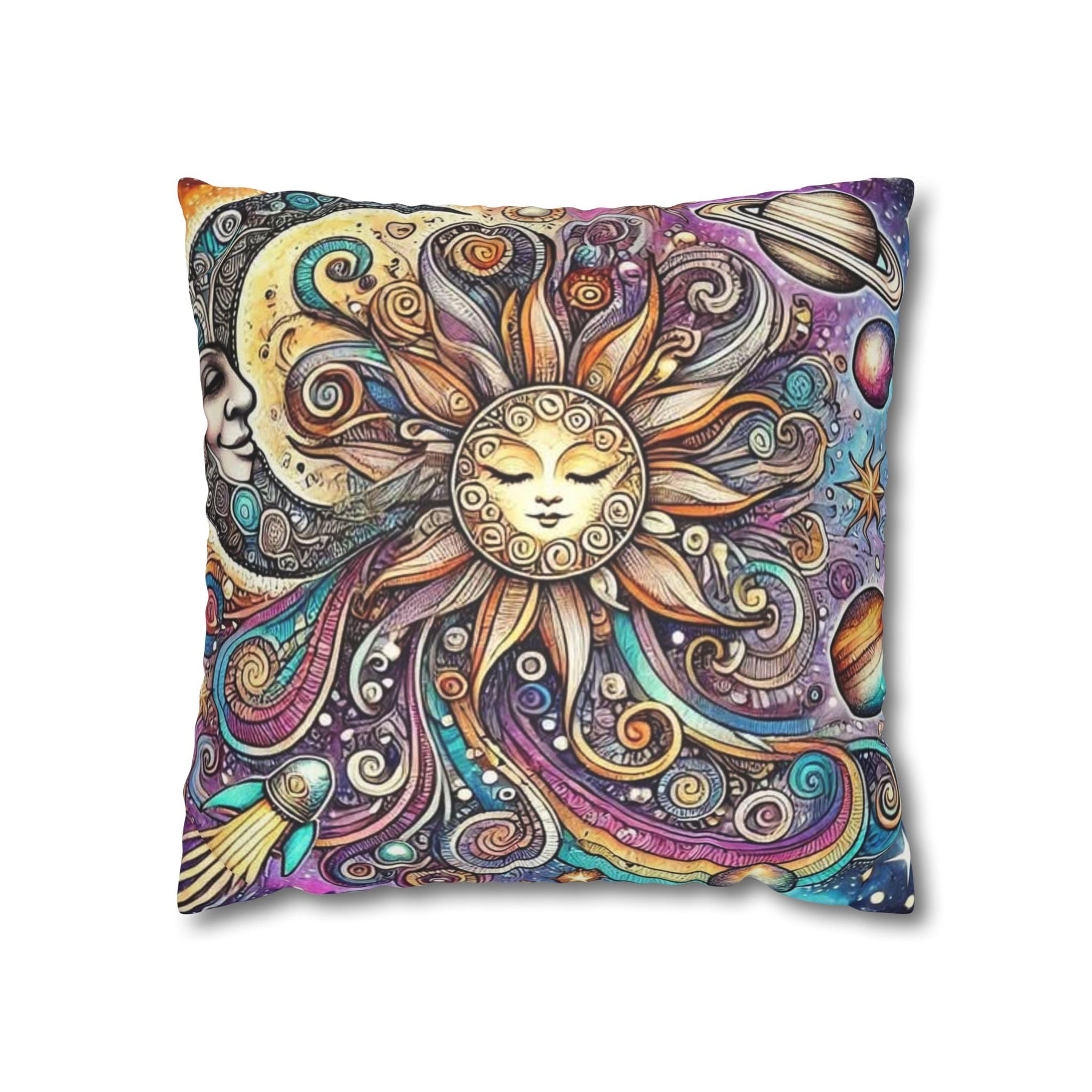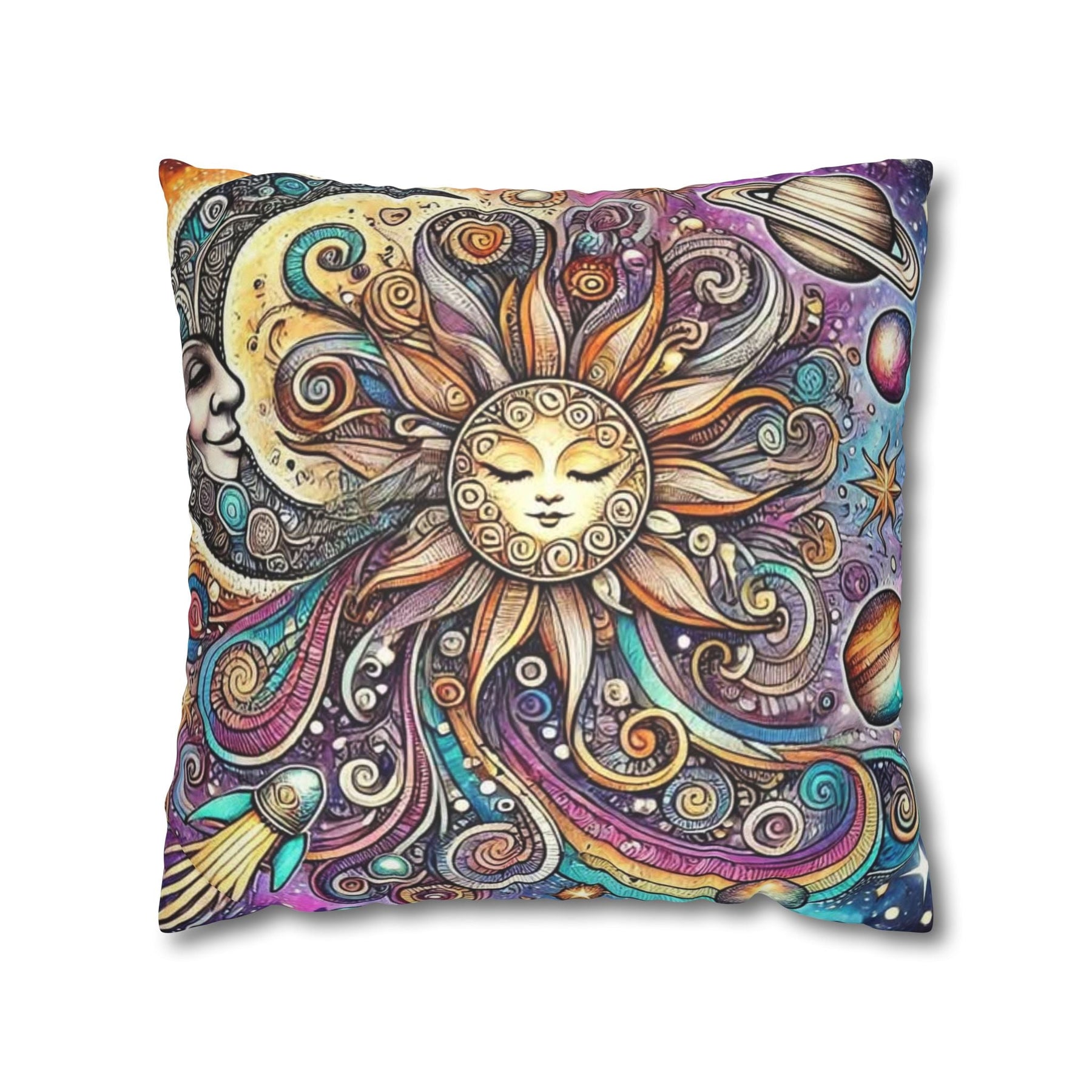 Add a touch of whimsy to your home décor with this vibrant Sun and Planets Celestial Pillow Cover. Featuring a stunning snow wolf design, it radiates positivity and enchantment, making it a perfect addition to any cozy space. Ideal for those who appreciate playful aesthetics, this Sun and Planets Celestial Pillow Cover is perfect for kids' rooms, nurseries, or even your living area. It brings a magical vibe that suits celebrations like birthdays, holidays, or just everyday joy. Crafted from soft, luxurious polyester cotton, it elevates your interior while being animal-friendly. Its double-sided print offers versatility, making it easy to switch up your décor whenever you fancy a change!