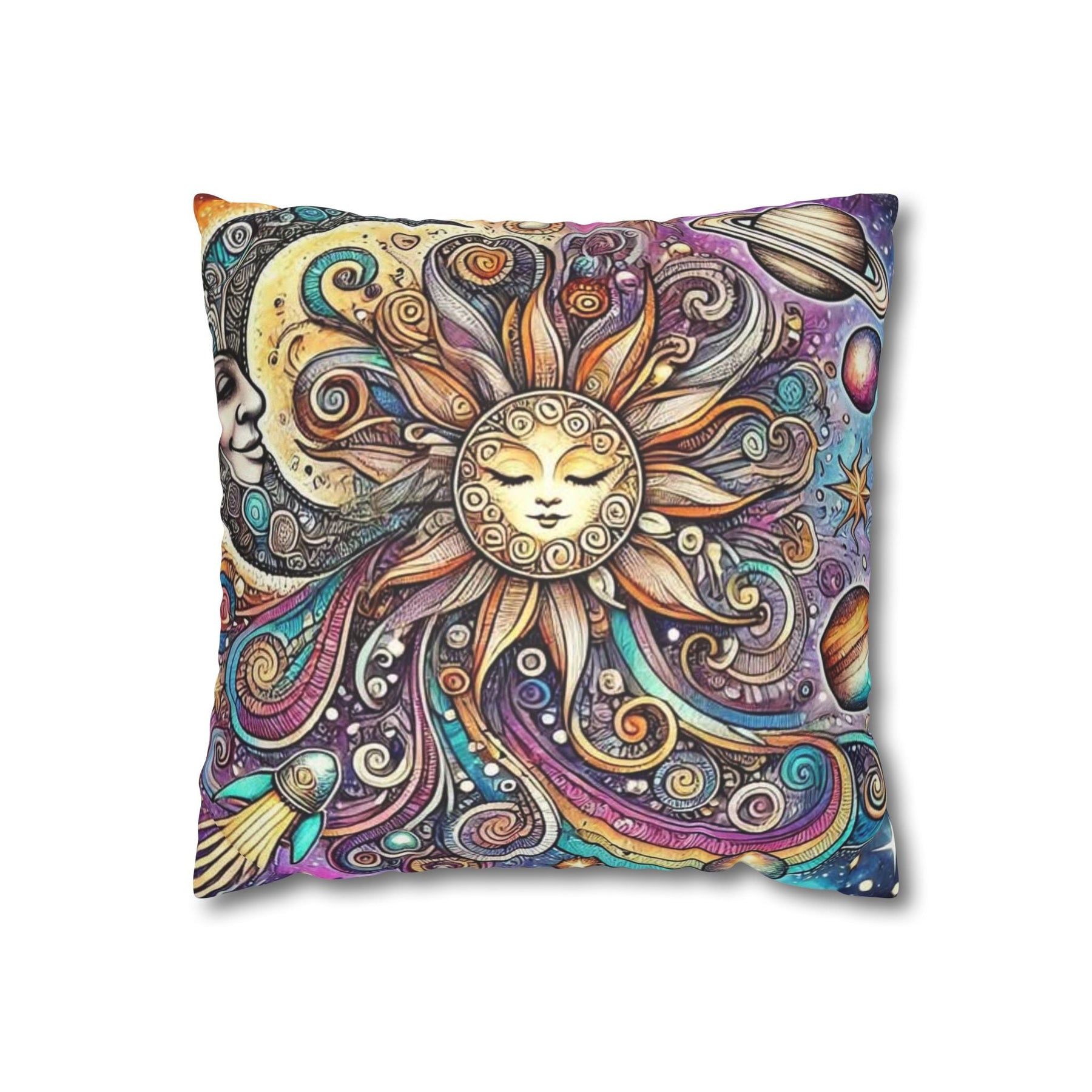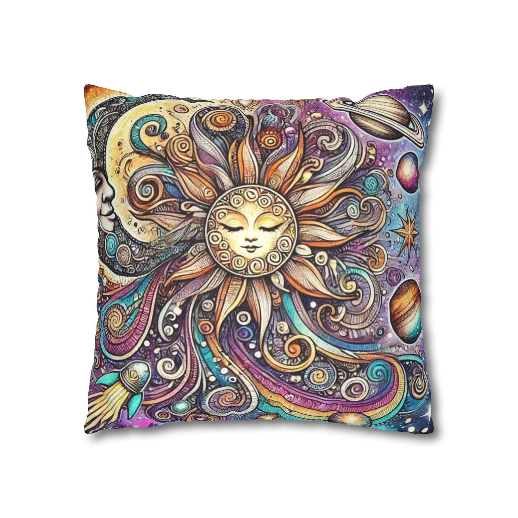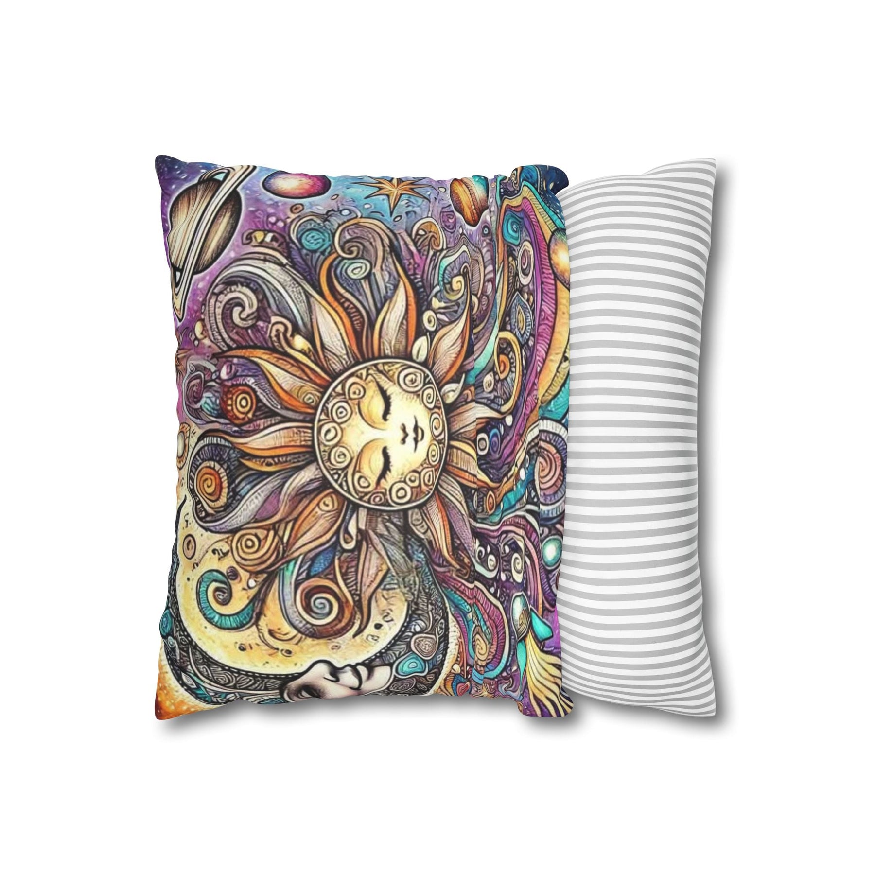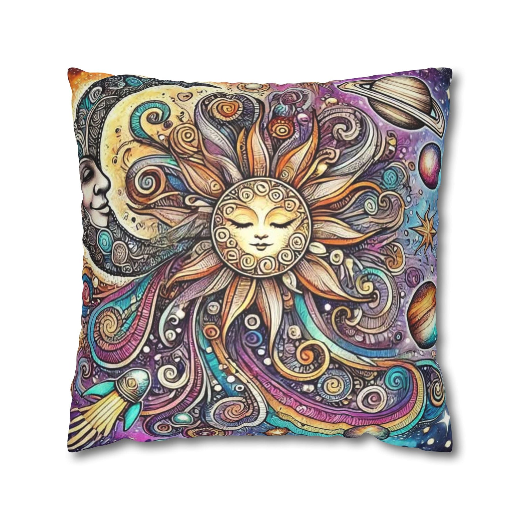 Add a touch of whimsy to your home décor with this vibrant Sun and Planets Celestial Pillow Cover. Featuring a stunning snow wolf design, it radiates positivity and enchantment, making it a perfect addition to any cozy space. Ideal for those who appreciate playful aesthetics, this Sun and Planets Celestial Pillow Cover is perfect for kids' rooms, nurseries, or even your living area. It brings a magical vibe that suits celebrations like birthdays, holidays, or just everyday joy. Crafted from soft, luxurious polyester cotton, it elevates your interior while being animal-friendly. Its double-sided print offers versatility, making it easy to switch up your décor whenever you fancy a change!