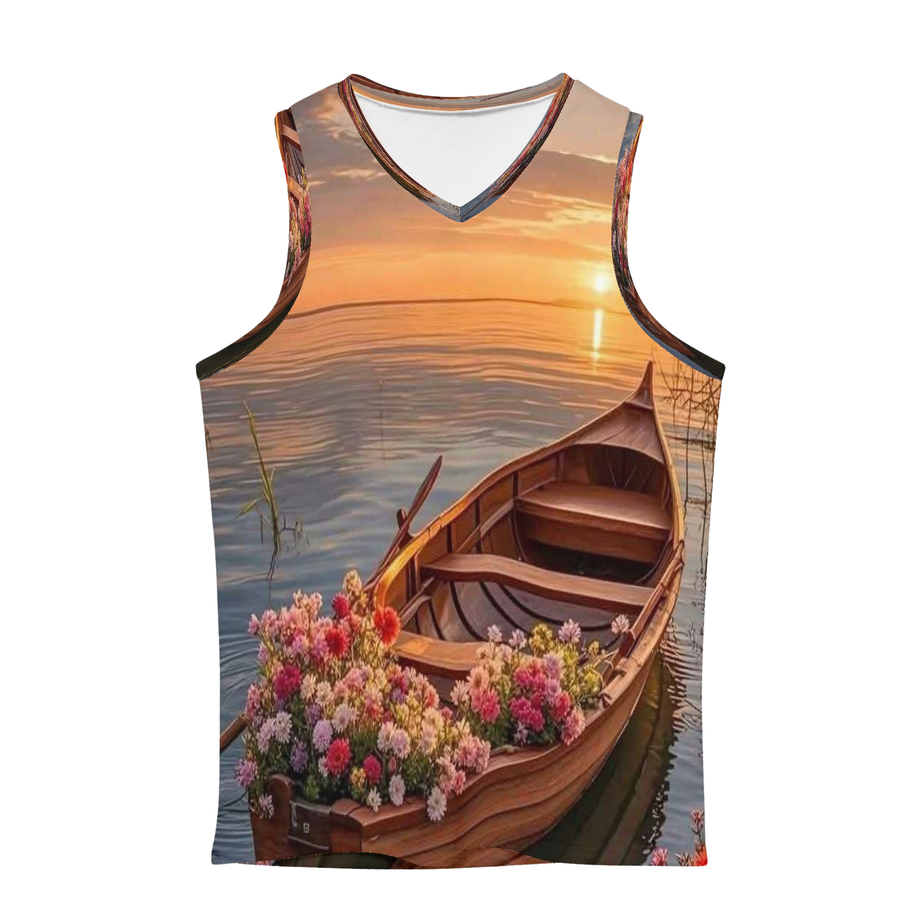 The Flowering Dahlias On A Boat Singlet combines elegant style with everyday versatility. Its quick-drying, moisture-wicking fabric keeps you cool and fresh, no matter how bright the day. Ideal for beach walks, yoga sessions, or simply relaxing in nature, it’s designed to move effortlessly with you. With its radiant print of dahlias and serene waters, this singlet celebrates balance and beauty—the perfect reflection of nature’s artistry and your free-spirited energy. It’s more than apparel; it’s wearable calm and color.
