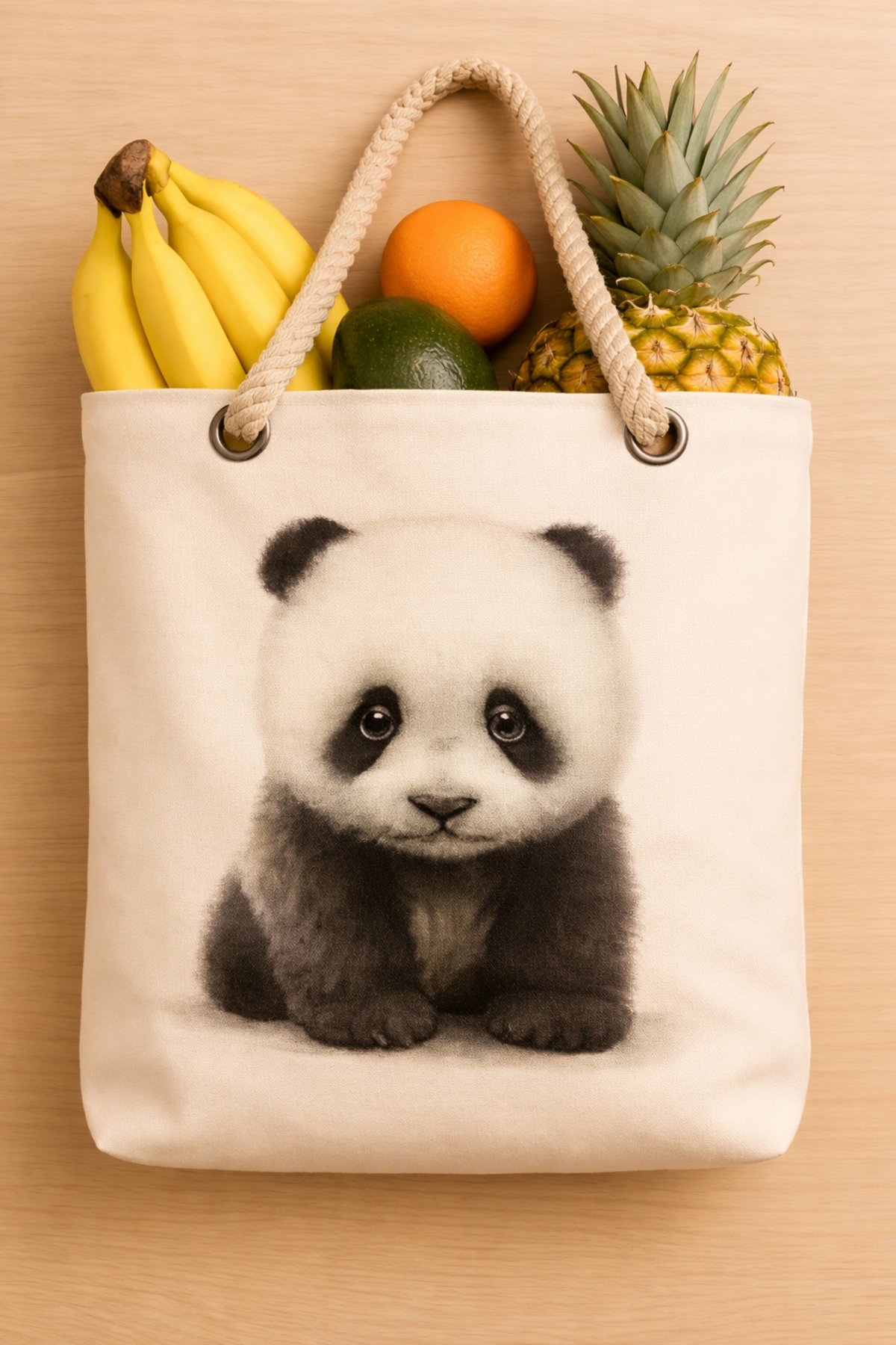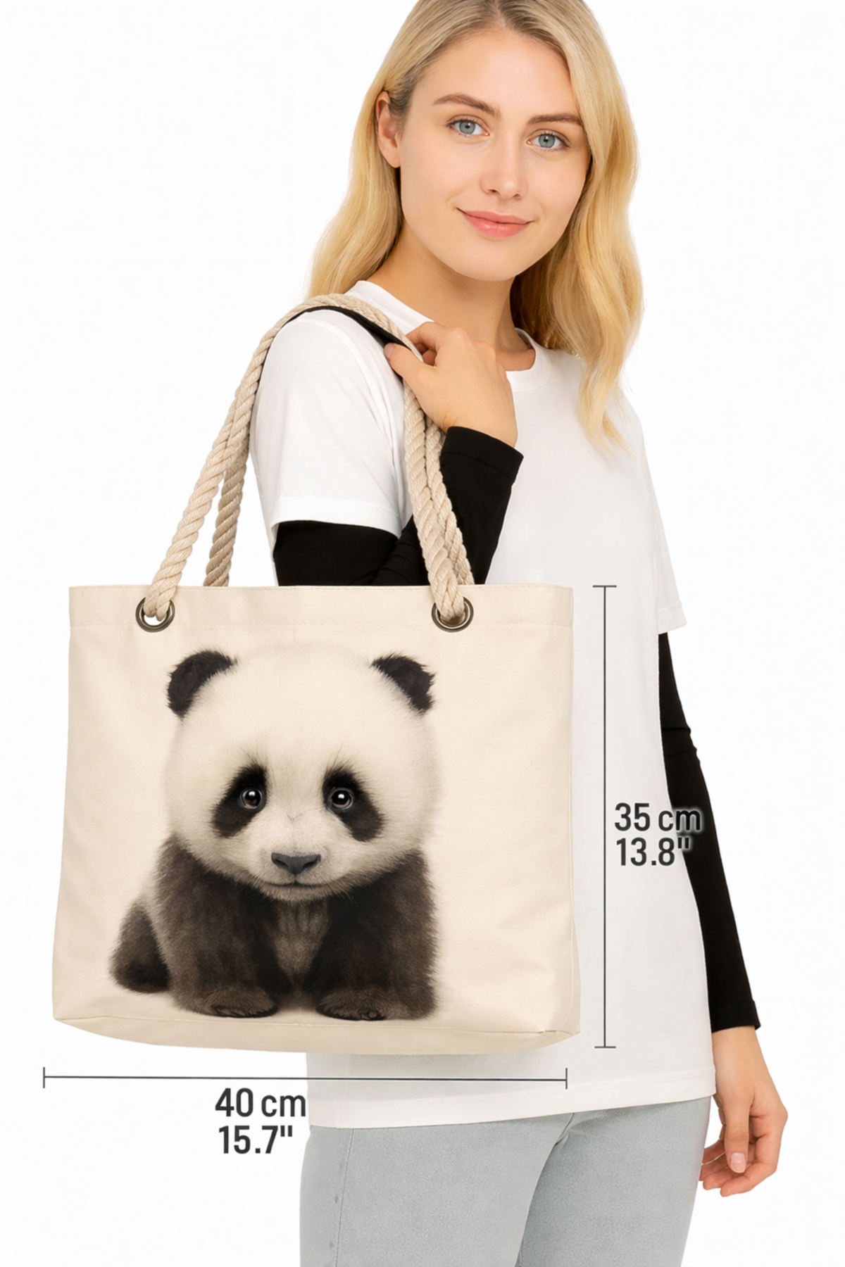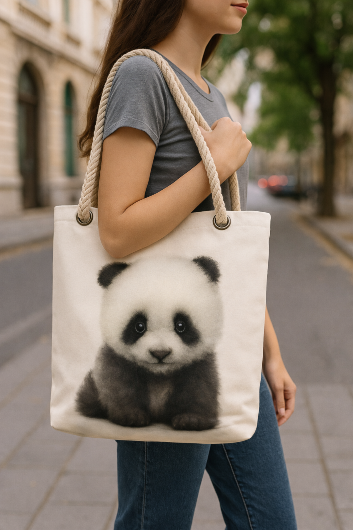 🐼✨Baby Panda Tote Bag with Hemp Rope Handl🐼