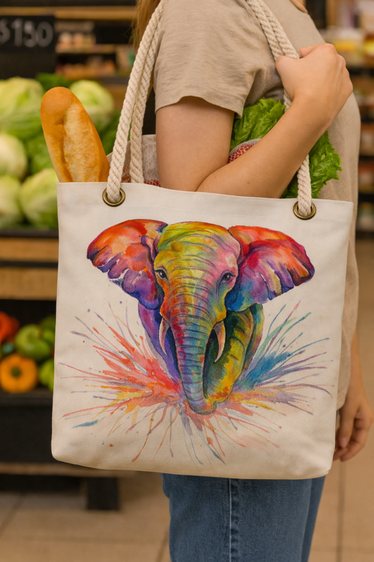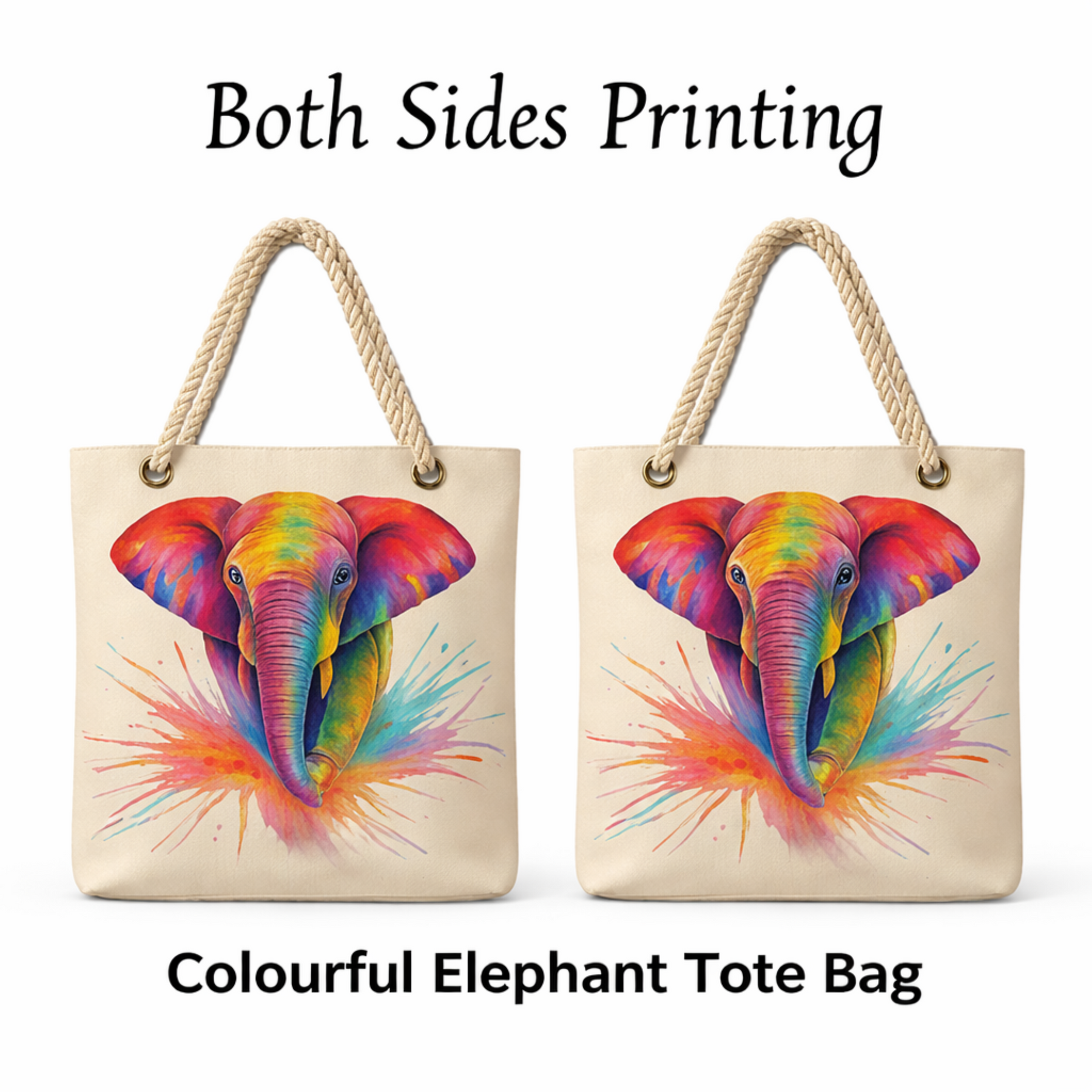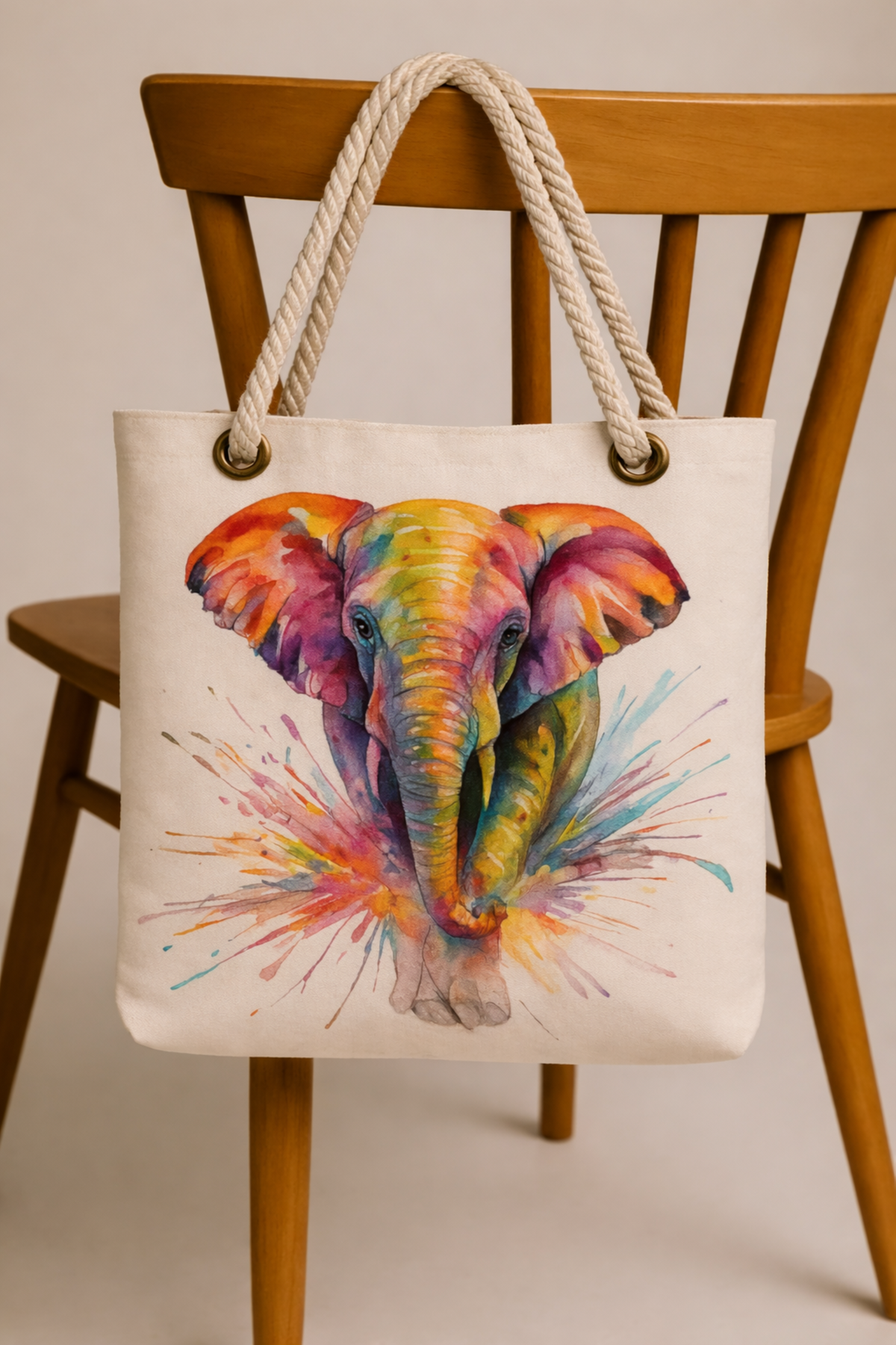 🐘🌈Colourful Elephant Tote Bag with Hemp Rope Handle – Joyful Spirit for Everyday Carry🌈🐘