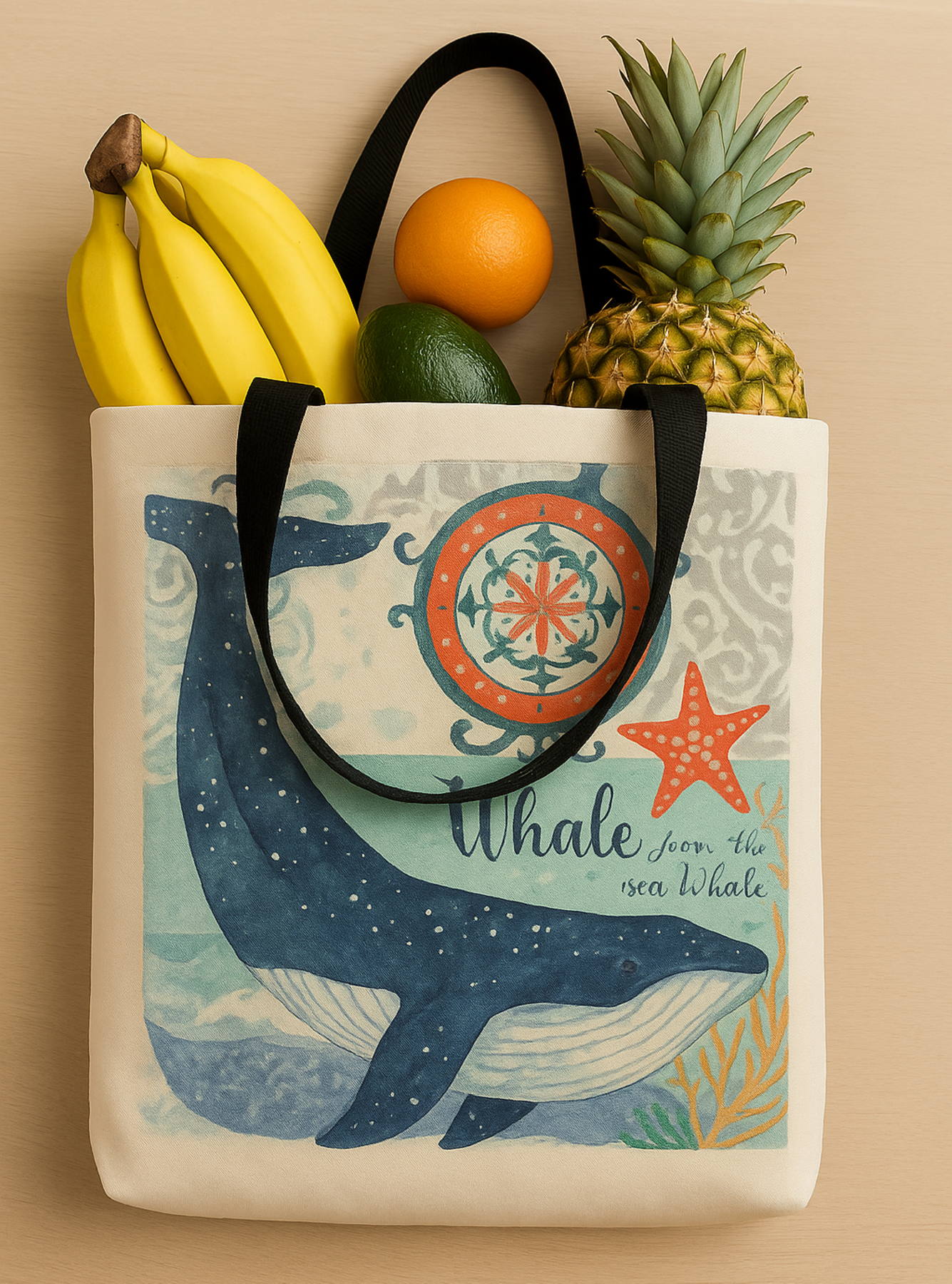 Featuring a beautifully illustrated whale surrounded by coral, sea stars, and nautical motifs, this tote captures the peaceful rhythm of the sea with soft aqua tones, vintage textures, and artistic coastal charm. Perfect for markets, beach days, travel, or everyday carry — it brings a touch of ocean magic wherever you go. 🌞🛍️