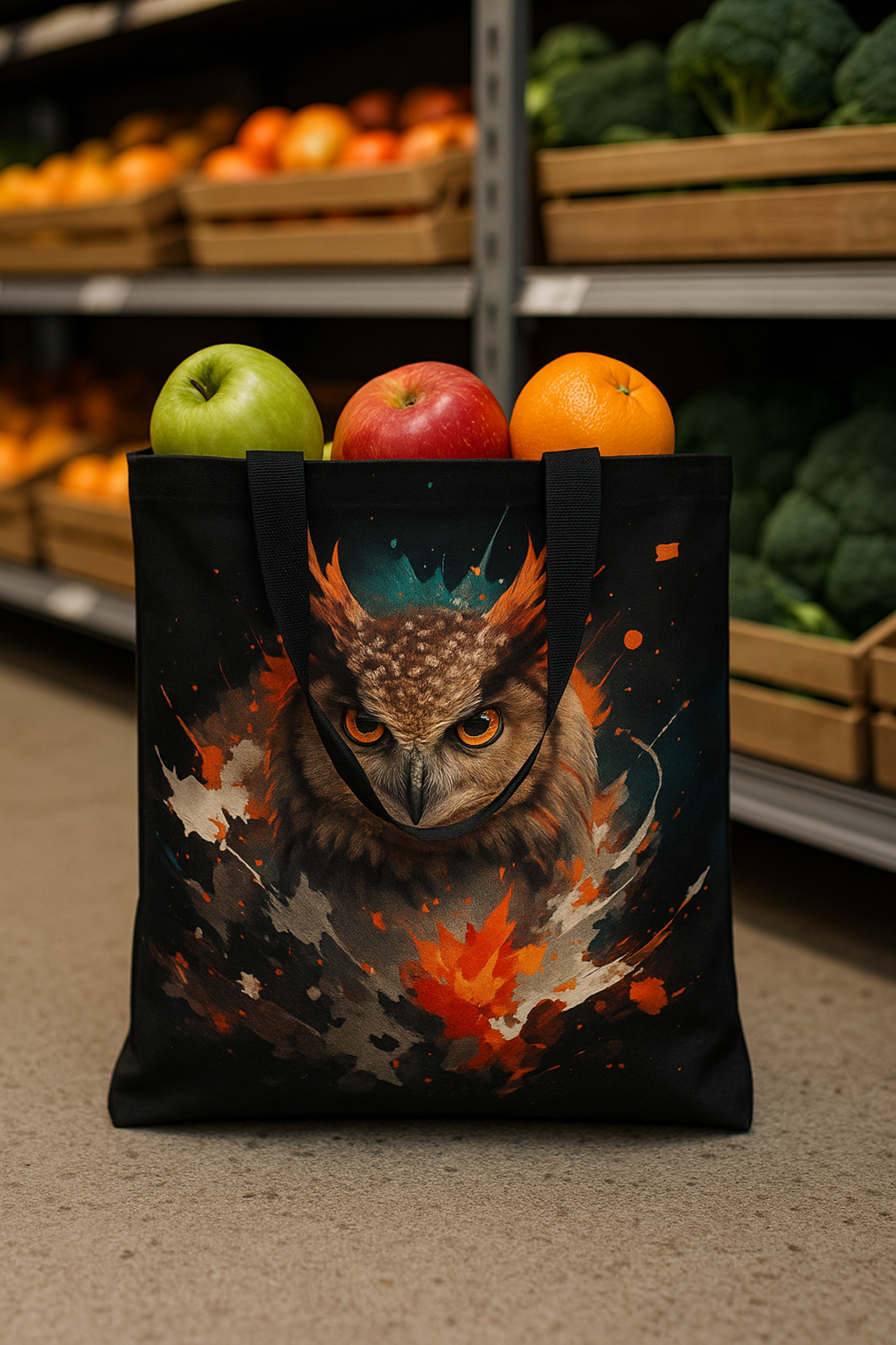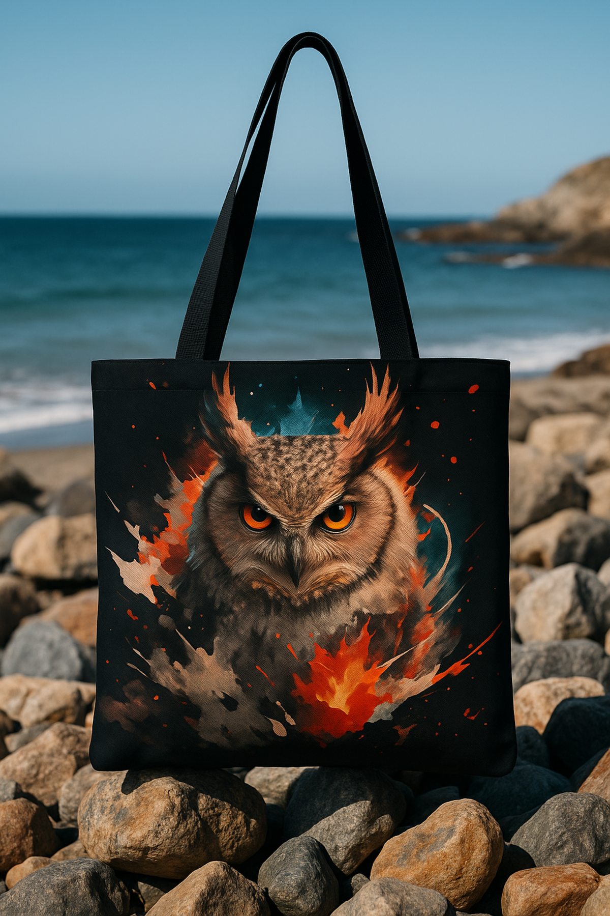 Crafted from premium canvas fabric with crisp, edge-to-edge printing, this tote is both durable and lightweight. 👜✨ The soft black straps offer comfortable all-day carry, while the spacious interior easily holds groceries, books, laptops, gym gear, or daily essentials. Whether you're an owl lover, fantasy art fan, or someone who thrives on eye-catching design, this bag adds instant mystique and flair to any outfit. 🔥🦉🌟