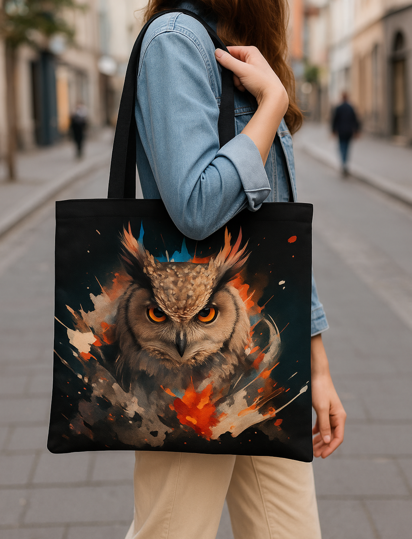 Ignite your style with the Mystic Ember Owl Tote Bag, a striking fusion of mystical energy and fiery artistic expression. 🔥🌌 Featuring a powerful owl surrounded by explosive embers, dramatic brushstrokes, and vibrant colour splashes, this tote brings bold magic to every outing — from city streets to twilight adventures. 🌙🛍️