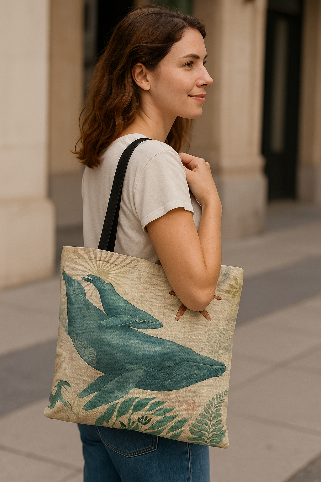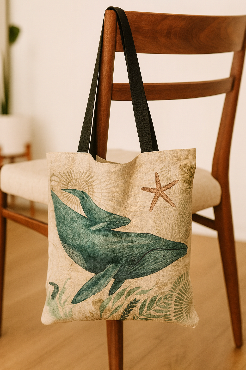 Celebrate the beauty of ocean love with the Whale & Calf Tote Bag, a heartfelt and eco-friendly carry-all designed for daily life, mindful living, and ocean-inspired style. Made from high-quality natural linen, this tote blends durability with a soft, organic texture — perfect for those who value sustainability without sacrificing beauty. 🌿💚 The tender whale-and-baby illustration brings warmth, calm, and coastal charm to your everyday routine, making it an uplifting accessory for shopping days, beach trips, school runs, or peaceful slow-living moments. 🐋💫