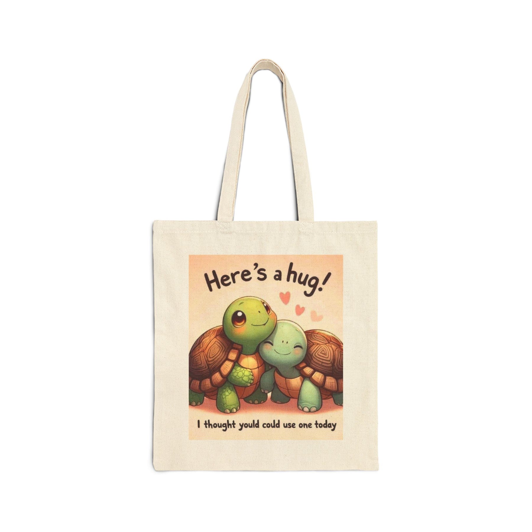 “Here’s a Hug!” Cotton Canvas Tote Bag 🐢💛👜✨