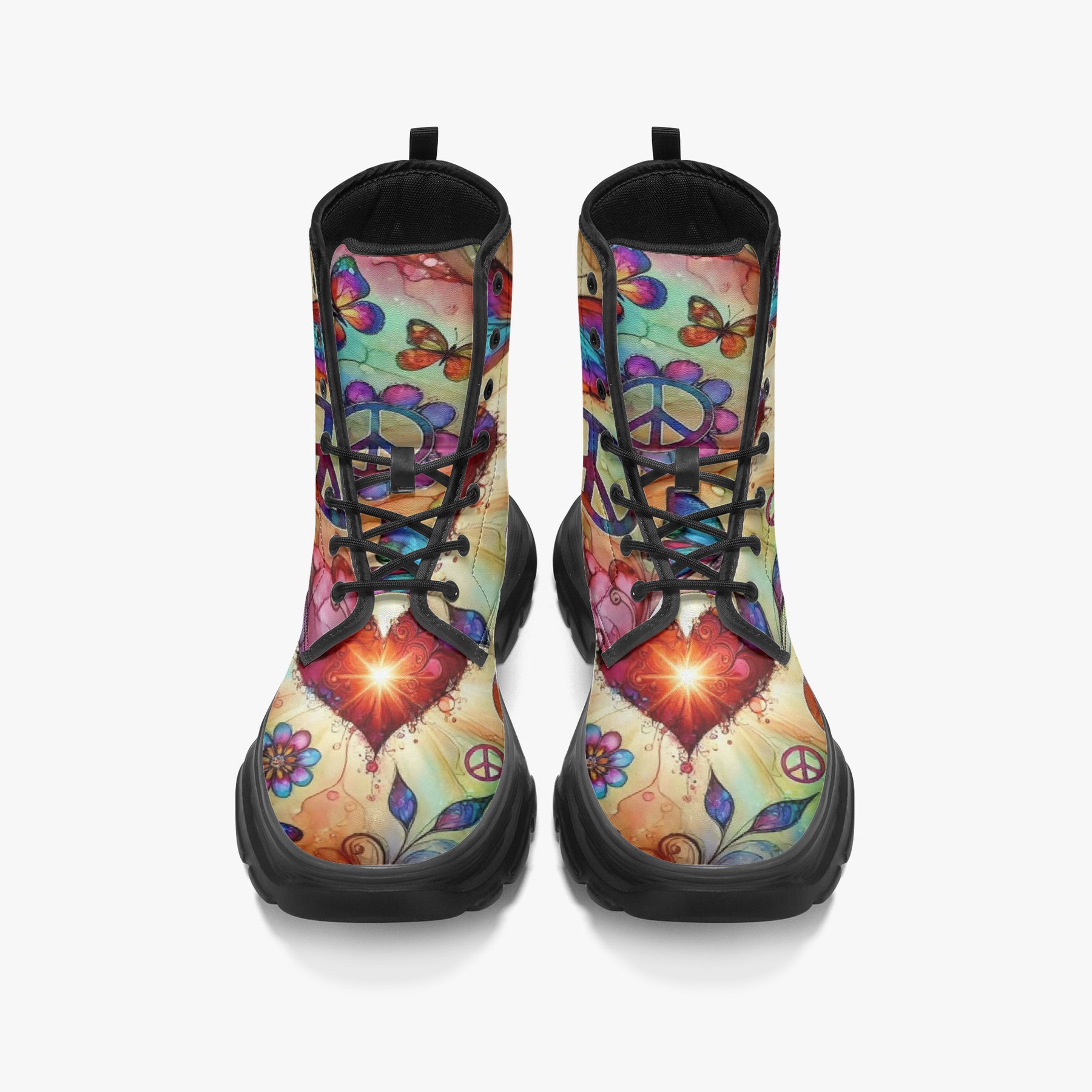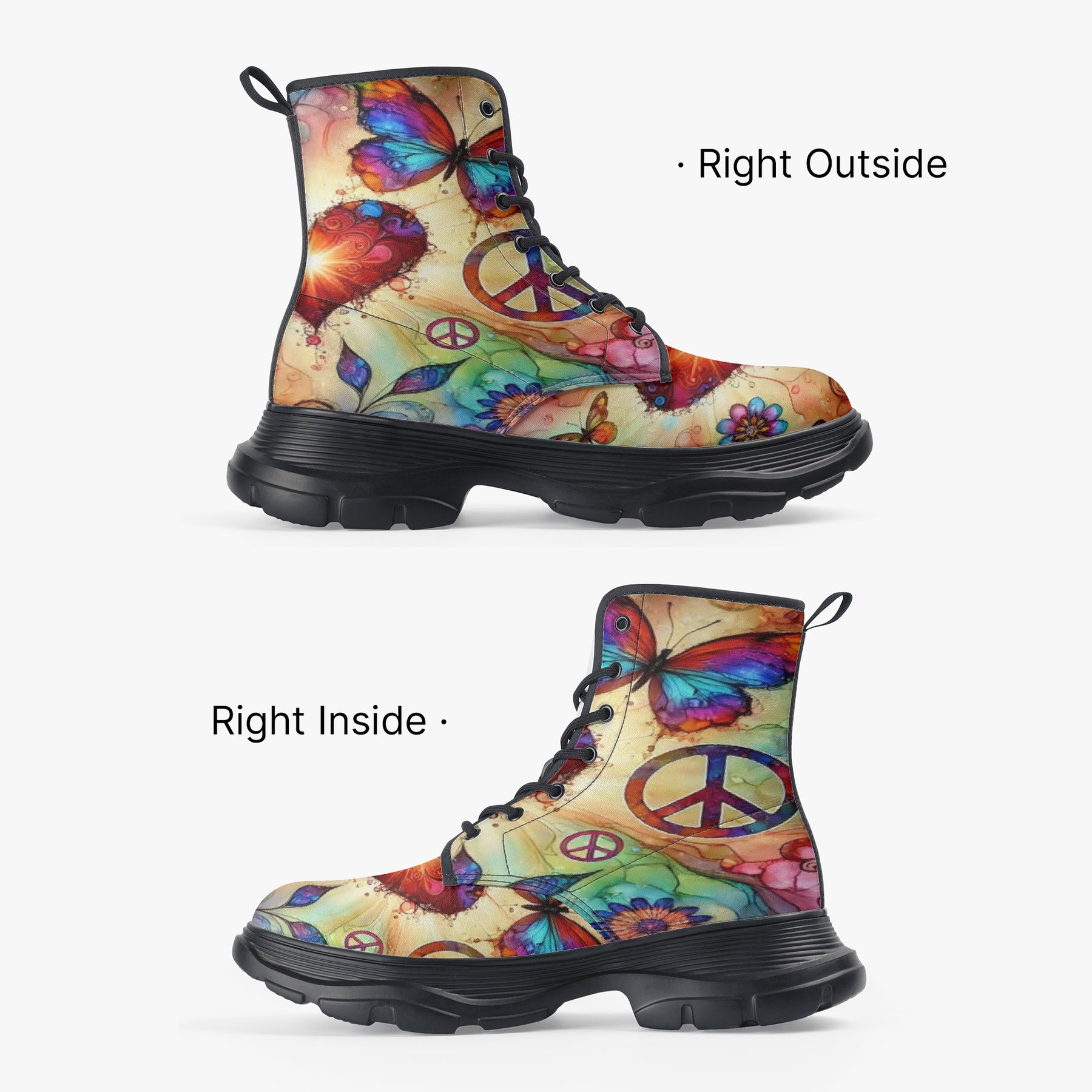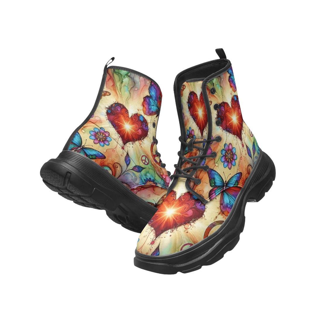 Butterflies & Hearts Chunky Leather Boots – Where Bold Beauty Meets Everyday Strength 👢🌹🦋