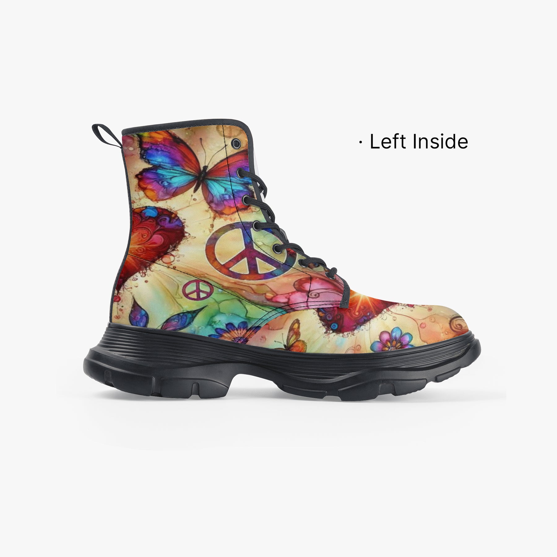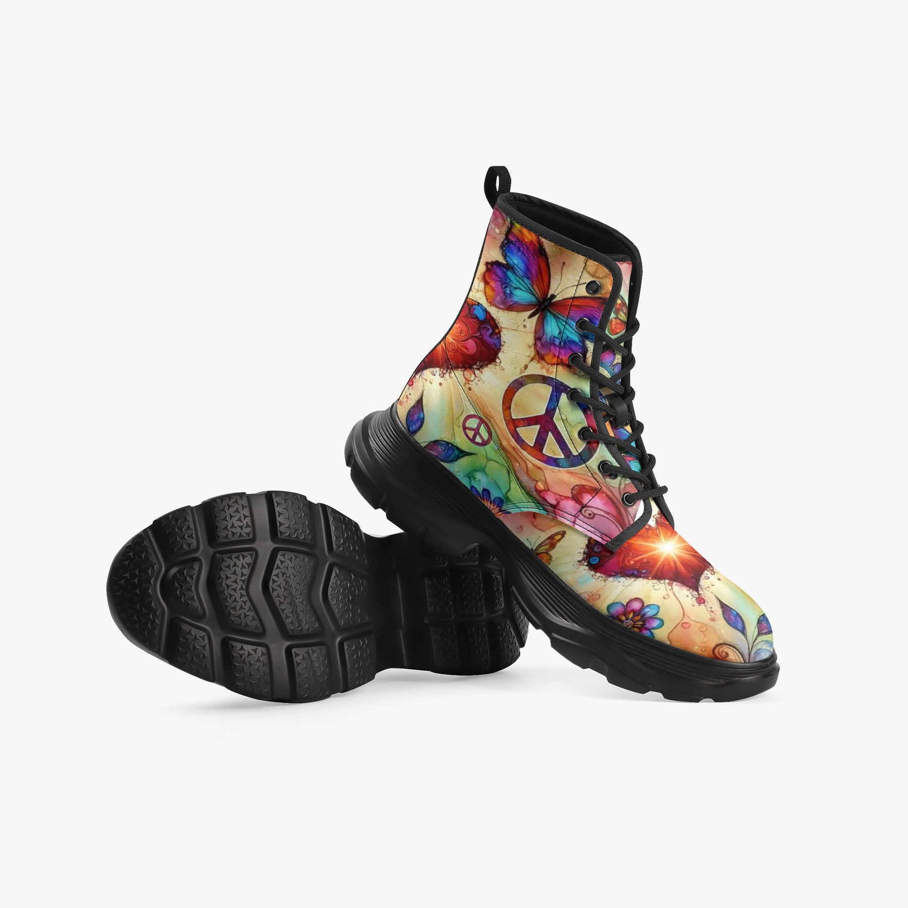 Step into confidence and creativity with the Butterflies & Hearts Chunky Leather Boots, where romantic artistry meets rugged performance. 🌸💖🦋 Crafted from premium genuine leather, these unisex boots feature a vibrant all-over floral and butterfly motif — a celebration of individuality, color, and bold self-expression. The chunky modern sole adds a touch of urban edge, while the EVA foamed insoles and breathable mesh lining ensure comfort that lasts all day. Whether you’re exploring new places, expressing your unique style, or simply walking through life with flair, these boots are built to empower every step. 👢🌹✨